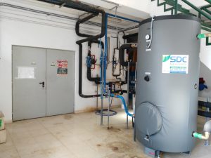 Sistemas de Calor ha realizado la reforma de la  sala de máquinas de instalación de ACS, donde se ha sustituido una caldera de gas natural de 120kw, deposito acumulador de ACS  de 1500 l , valvulería  y bombas hidráulicas.