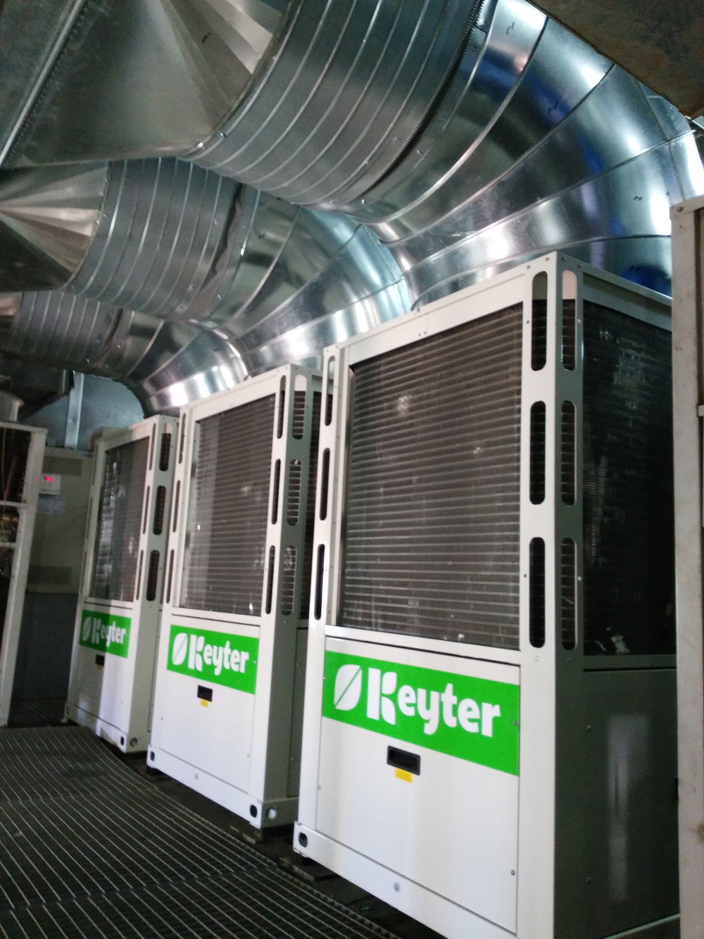 En sala de máquinas se han sustituido los ventiladores de condensación por otros de alta presión para aumentar el rendimiento de los equipos existentes .